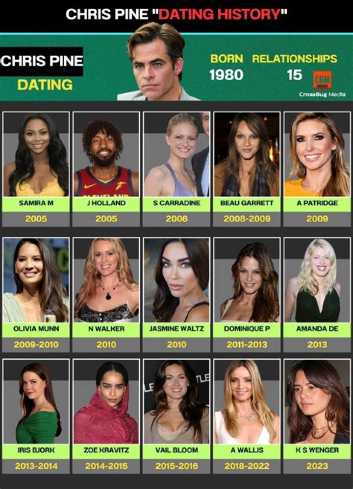 Answer: Chris Pine has been in a number of high-profile relationships, but the exact number is unknown as he keeps his personal life private. Some of his most notable relationships include those with actresses Audrina Patridge, Olivia Munn, and Zoe Kravitz.